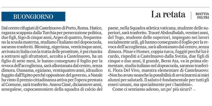 Questa autobiografia non si cancella, anzi si deve studiare, per capire come lasciarla fuori dal nostro comune futuro. Ho timore che molti siano i segnali in senso contrario, ho timore che non si faccia abbastanza per alzarsi in piedi e fermare l’onda nera che avanza. La quale, attenzione, non è certo rappresentata dal consigliere di cui ho parlato, ma di cui lui, forse inconsapevolmente, è strumento.